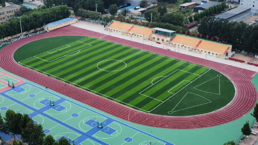 (1)、施工準備a.首先要進行草坪場地基礎的驗收,確保場地基礎干燥、光滑、平整,坡度符合排水要求。b.人造草坪采用50m...